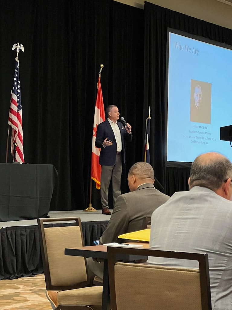 Brian Reich discussing career transition during a Major Cities Chiefs Association meeting